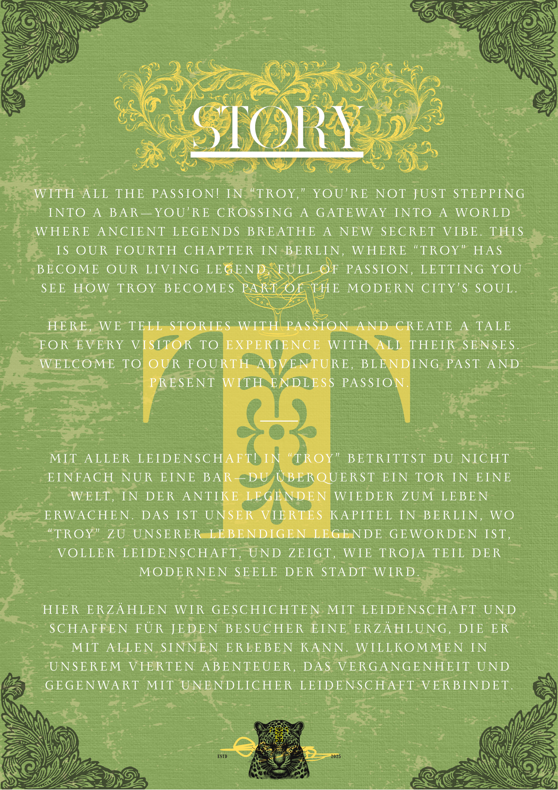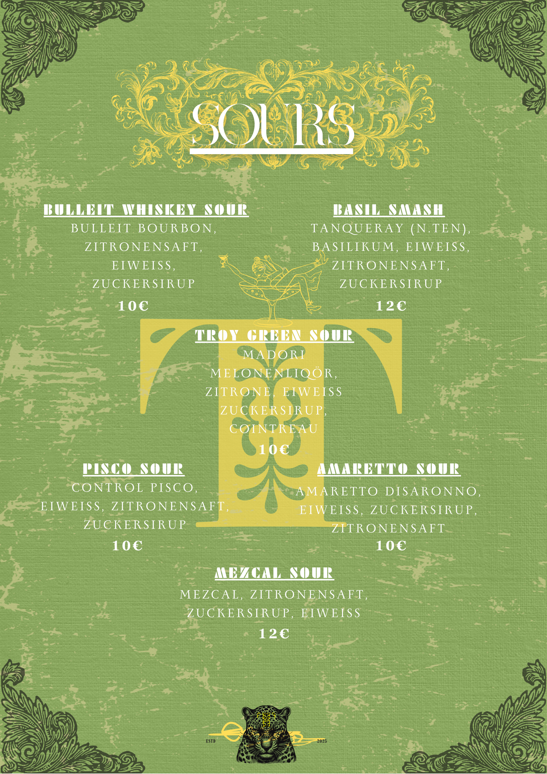 Willkommen in der TROY BAR! Hier erwartet Sie eine exquisite Auswahl an Signature Drinks, Premium Cocktails, leckeren Burgern und hausgemachten Desserts. Tauchen Sie ein in unsere Speisekarte und lassen Sie sich von unserer Vielfalt inspirieren.